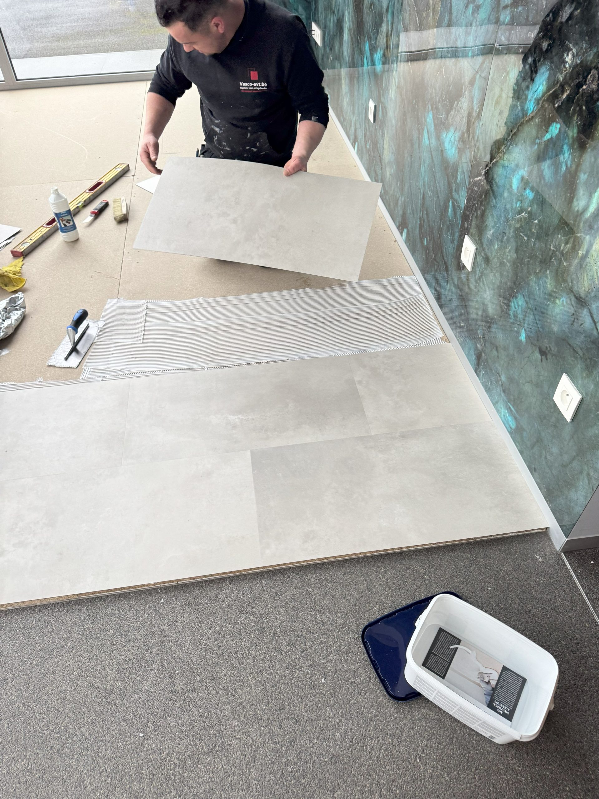 Een kant-en-klare lijm, speciaal afgestemd op de tegels en makkelijk in gebruik.
